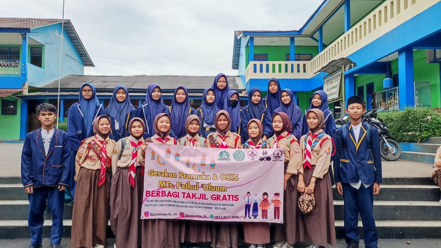 Berbagi takjil ini dilakukan oleh 37 orang yang merupakan anggota pramuka dan pengurus OSIS MTs. Fathul ‘Uluum yang didampingi oleh ketua Mabigus, Pembina dan pembantu pembina. Total ada 300 paket takjil yang dibagikan secara gratis kepada masyarakat.