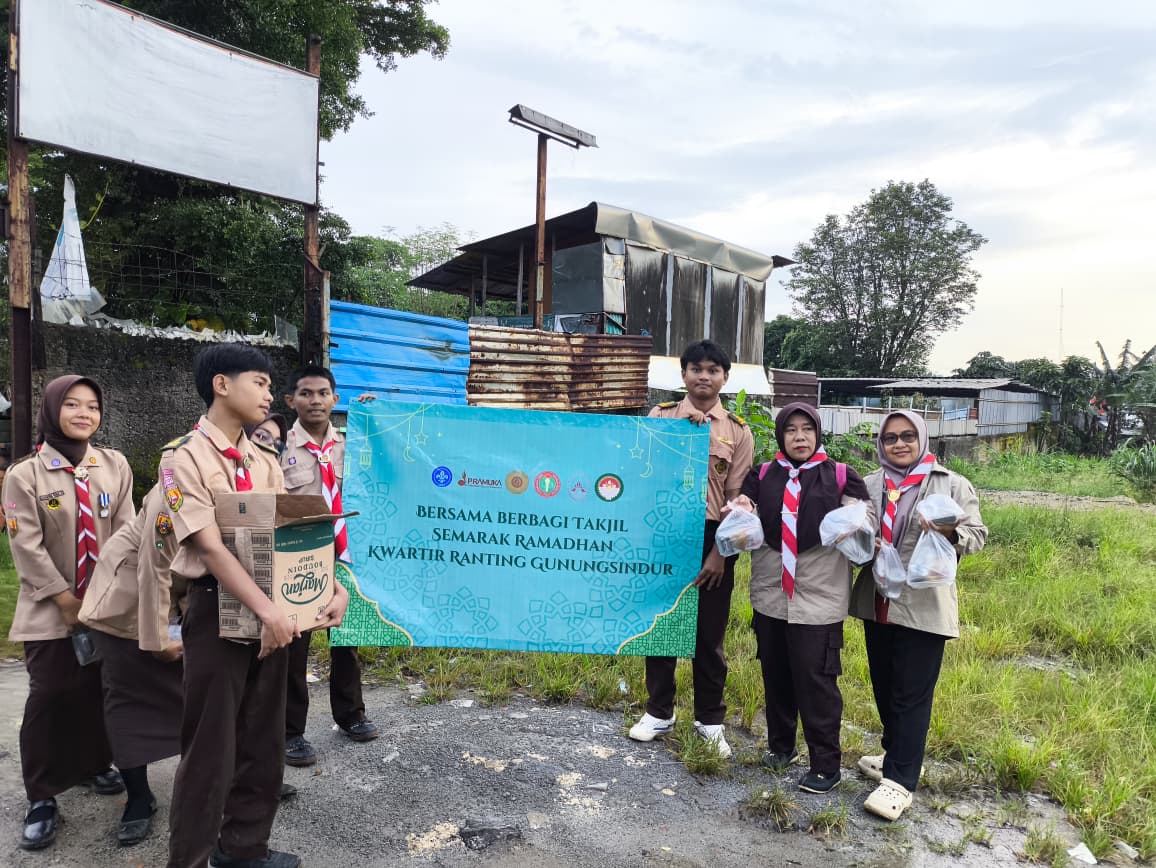 Kwartir Ranting GunungSindur mengadakan kegiatan berbagi takjil kepada masyarakat pada Sabtu sore, 7 Maret 2026, di Jalan Suliwer. Kegiatan ini merupakan bentuk kepedulian sosial sekaligus upaya mempererat kebersamaan dengan masyarakat selama bulan Ramadan.