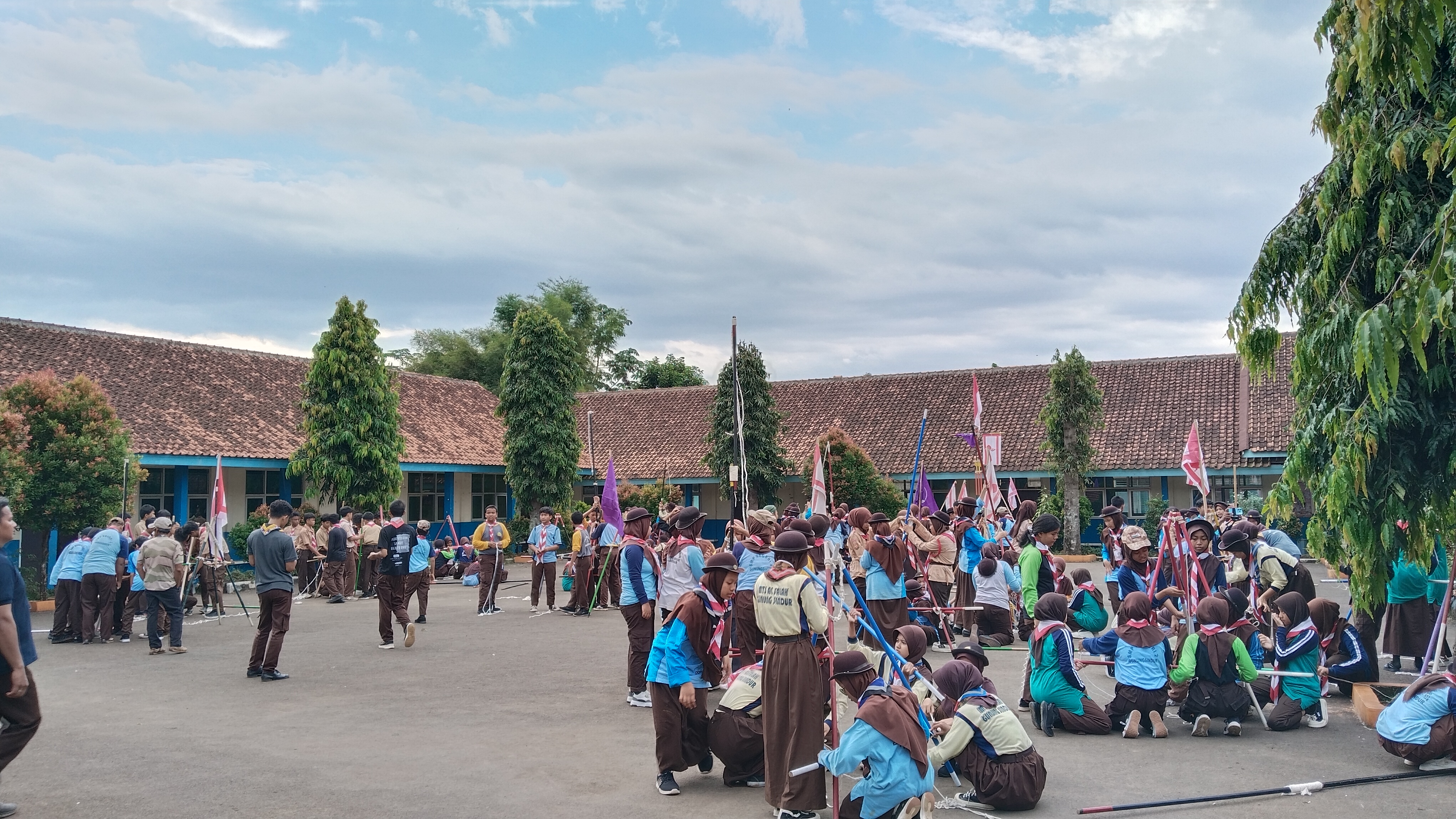 Gunung Sindur, 24 Mei 2025 — Latihan gabungan Pramuka Penggalang yang diselenggarakan oleh Kwartir Ranting Gunung Sindur pada Sabtu (24/5/2025) berlangsung dengan penuh semangat dan diikuti oleh anggota Penggalang dari berbagai gugus depan se-Kwarran Gunung Sindur, serta dihadiri langsung oleh Ketua Kwarran, Enok Edah, bersama para pembina Pramuka. Kegiatan ini bertujuan untuk meningkatkan keterampilan, kedisiplinan, serta mempererat tali persaudaraan antaranggota melalui berbagai materi dan praktik lapangan seperti latihan baris-berbaris, pionering, sandi-sandi, dan permainan kerja sama tim yang dilaksanakan di wilayah Kwarran Gunung Sindur. Dalam sambutannya, Kak Enok Edah menyampaikan harapan agar latihan gabungan ini dapat terus dilaksanakan secara rutin sebagai upaya membentuk generasi muda yang berkarakter, mandiri, dan berjiwa kepemimpinan, sementara seluruh rangkaian kegiatan berlangsung tertib, lancar, dan ditutup dengan apel bersama serta sesi foto sebagai bentuk kebersamaan seluruh peserta dan pembina yang hadir.